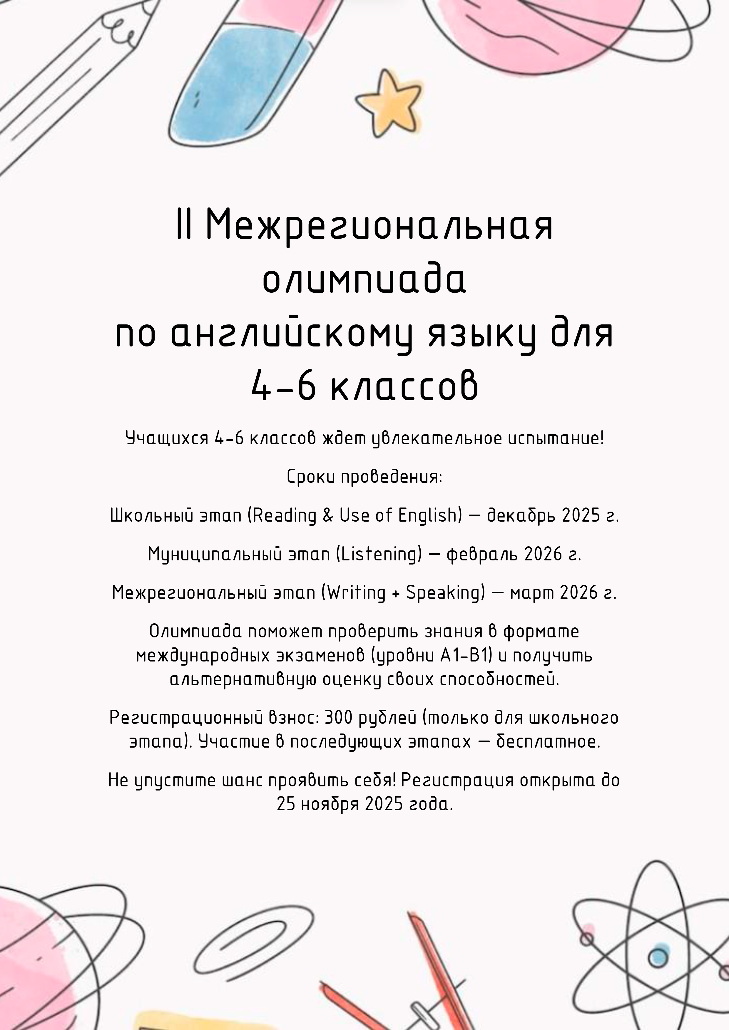 МЕЖРЕГИОНАЛЬНАЯ ОЛИМПИАДА ПО АНГЛИЙСКОМУ ЯЗЫКУ ДЛЯ 4-6 КЛАССОВ